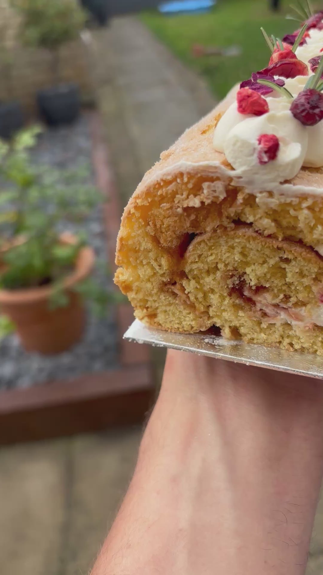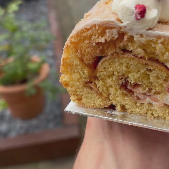 Strawberry & Cream Yule Log G/F* - Contains - Eggs & Milk. (made with gluten free flour & gluten free ingredients but please be aware I use gluten in my kitchen so cross contamination is possible)